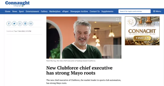 The new chief executive of Clubforce, the market leader in sports club automation, has strong Mayo roots. The new CEO is Noel Murray, formerly of Microsoft and current chairman of the board at Clubforce. Noel hails from Birmingham but has a family heritage rooted in Achill, and is married and settled in Dublin.