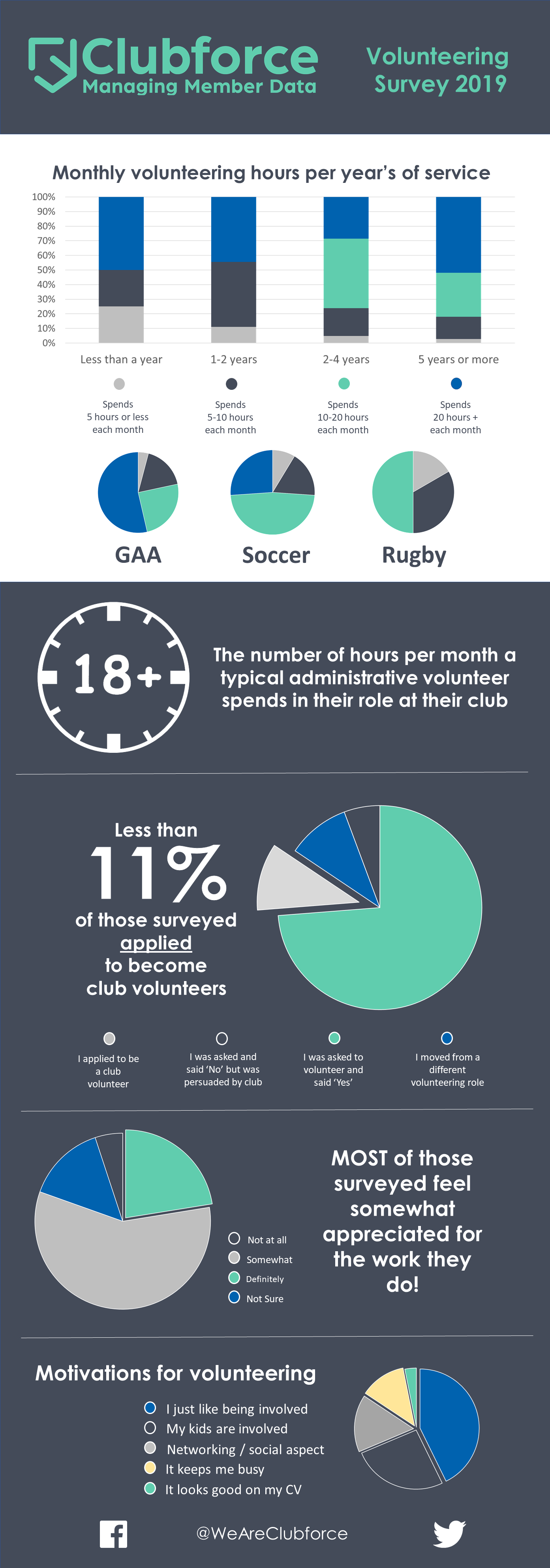 Over the last few weeks Clubforce conducted a short survey of active club volunteers with some interesting findings summarised in the infographic below.