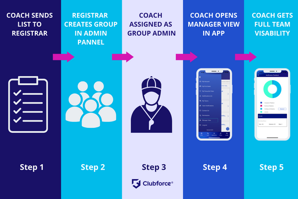 The Manager View functionality in the Clubforce app will shave at least 20 hours of volunteering time! Get your club coaches using the Clubforce app by downloading and sharing this simple 5-step Manager View overview with them.