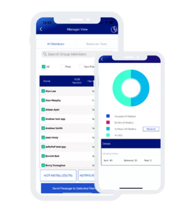 When the coach has access to Manager View, they can easily see (on the app or desktop) who has paid or not; message members about training, matches etc., and see updates on member responses. The club committee can also assign new members to a group, approve group members and send messages to group members from the club administration panel.