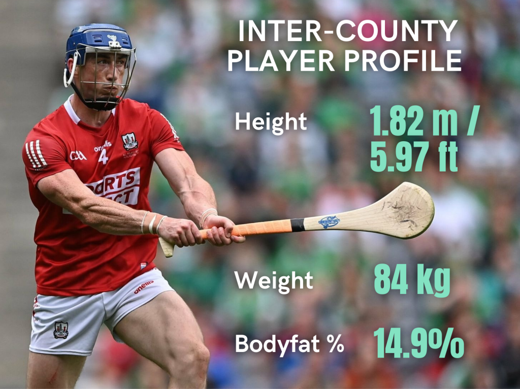 An inter-county player is certainly not a small man. When we aggregate the data of over 650 elite players (albeit with some likely duplicates across studies) we find that the average player stands at 1.82m (a smidge under 6 feet in old money) and weighs in at just over 84kg.Research carried out by Robert Davies and colleagues at the University of Limerick using the gold standard method of DXA found that the average bodyfat percentage of 190 inter-county players (144 hurlers, 46 footballers) was a lean 14.9%.