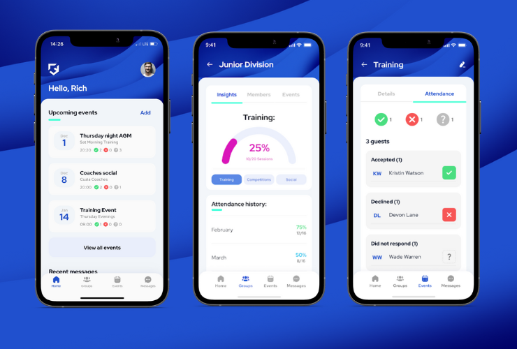 Centralise your communications and use the Clubforce Connect mobile app to keep track of your club events and member activity. Track attendance before training with RSVP functionality and view participation insights in-app.